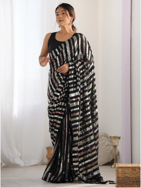 The black saree for party occasions ensures that the wearer stands out gracefully, making it a reliable option for cocktail parties, receptions, or festive gatherings.